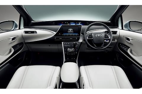 The Mirai's profile connects the front and rear in a seamlessly pleasant expression of space. It creates a sophisticated cabin space with soft padding on door trims and other interior surfaces, and a high-luminance silver finish throughout.